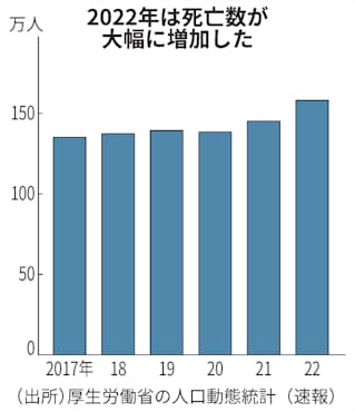 22年の死亡158万人超、戦後最多 コロナ余波も